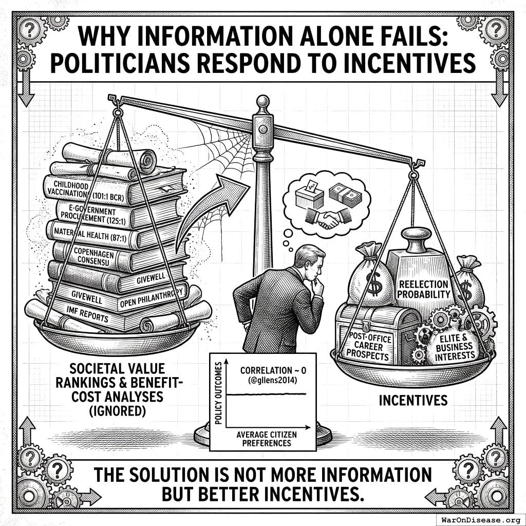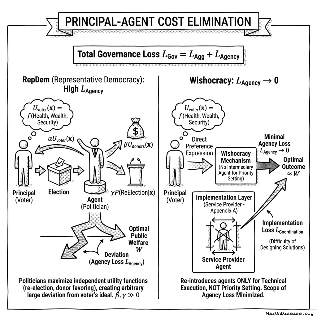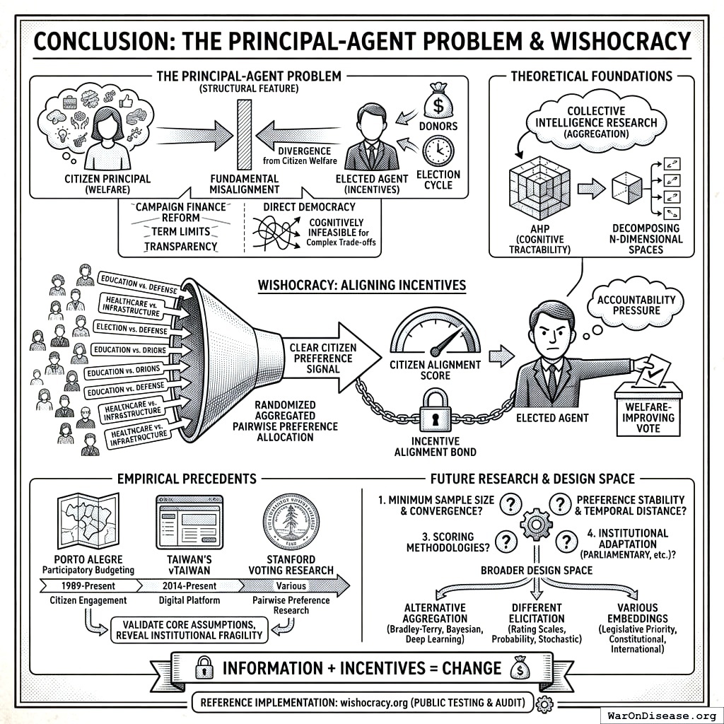 The Problem in One Sentence: Representative democracy suffers from an inescapable principal-agent problem: elected officials face incentives (re-election, donor pressure, special interests) that systematically diverge from citizen welfare, while direct democracy mechanisms are too cognitively demanding to scale beyond binary referenda.