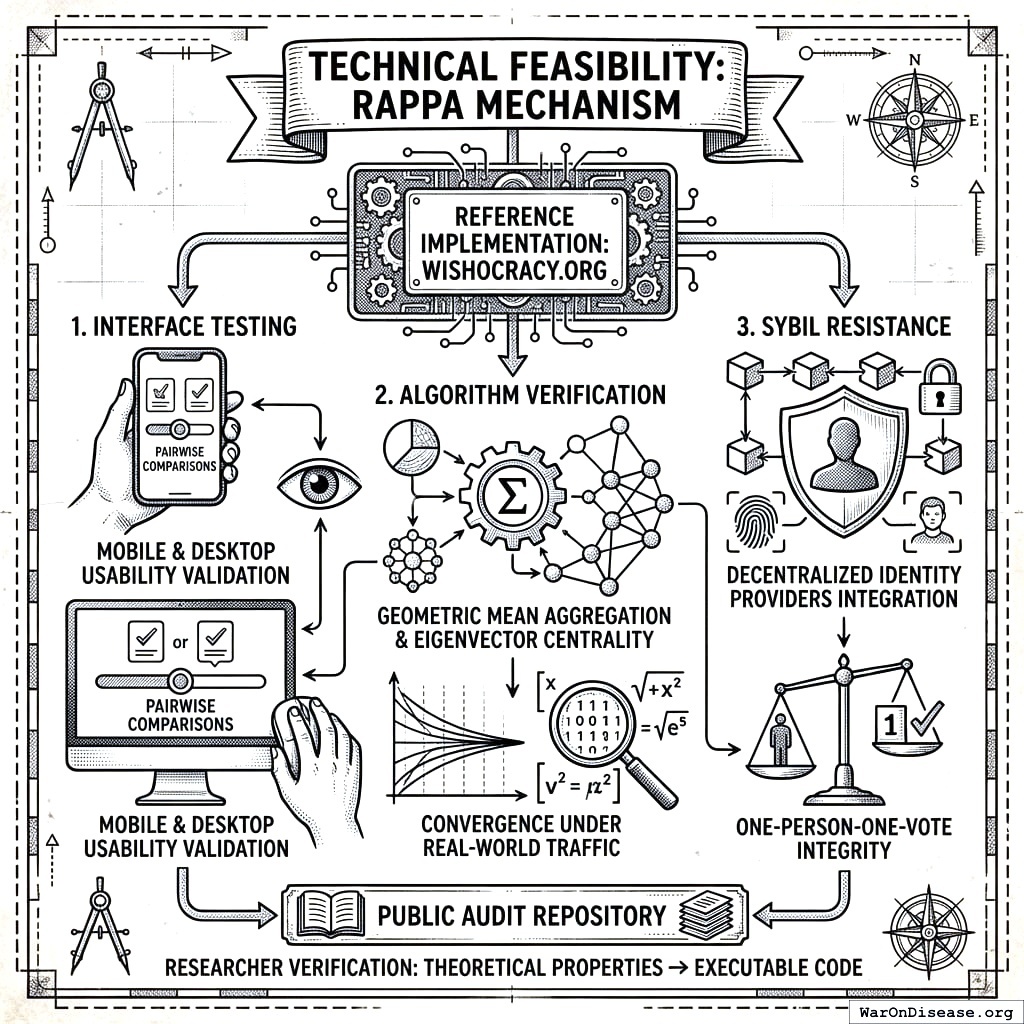 To validate the technical feasibility of the RAPPA mechanism, a reference implementation has been deployed at Wishocracy.org. This open-source implementation serves as a pilot environment for: